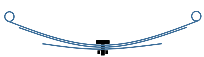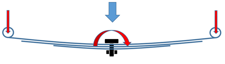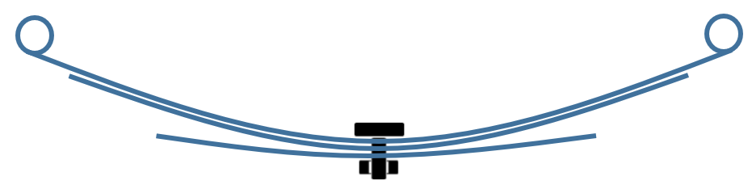 - 組み立て前の形状:下吊式スプリングの一番上のリーフのボルト位置と上吊式スプリングの一番下のリーフのボルト位置。