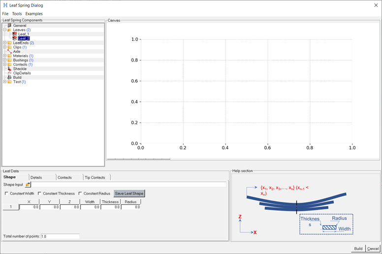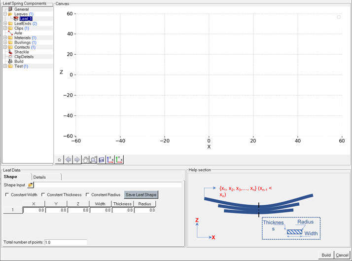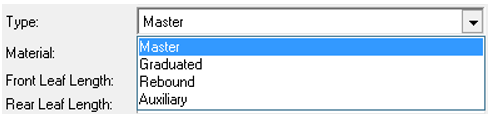 スプリングアイを持つ、スプリング内で最も長いリーフがマスターリーフです。その他のリーフはしだいに小さくなります。Leavesコンポーネントには、テーブルや.csvファイルへの入力や変更が可能な属性が詳しく記述されています。更新が発生するたびに、それに合わせてHelpセクションが変更されます。