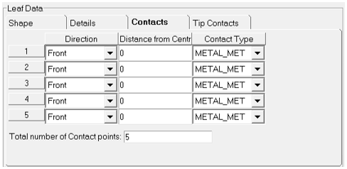 9. Leaf Data - Tip Linerの各オプションを‘Off’に設定したTip Contactsタブ