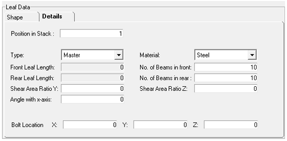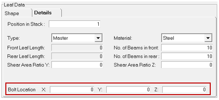 Bolt Locationは、形状状態が組み立て前の場合にのみ必要です。基準位置としてリーフのボルト位置を提供し、組み立て前の形状状態から正しいリーフプロファイルを生成します。
