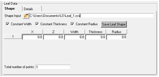 注: リーフの幅が変数の場合は、Keyword = "Variable"を使用します。幅が変数の場合は、リーフプロファイルデータ内の3つ目の列で幅を指定する必要があります。