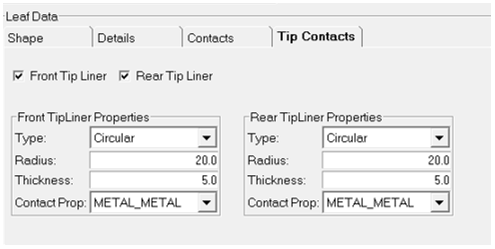10. Leaf Data - Tip Linerの各オプションを‘On’に設定したTip Contactsタブ