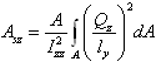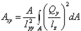 Qyは、y方向の力によってせん断力を受ける断面領域の最初のモーメントです。lzは、z方向の断面寸法です。Iyyは、ビームのy軸に関する断面2次モーメントです。y方向のせん断変形を無視するには、ASY=0に設定します。ASY ≥ 0