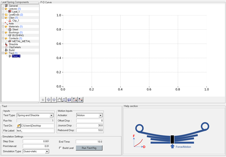 - テストプロセスを実行するテストのタイプを定義します。2つのタイプ“Spring and Shackle”と“Spring only (SAE j510)”があります。