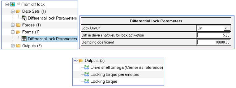 モデルを構築すると、それぞれのアクスルの駆動システムでデフロックシステムが作成されます。図 2. 駆動システム内のデフロック