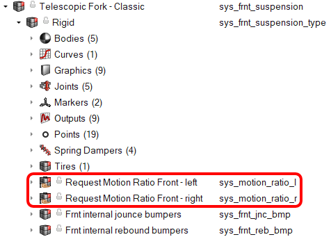 Ratioで始まるラベルを持つ別個のシステムに含められます。このシステムは、モデル内のサスペンションのスプリングシステムまたはストラットシステム内に含まれます。図 2.