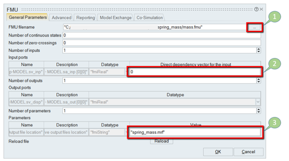 注: パラメータは、シミュレーションのための異なるFMUシステム構成を設定するのに役立ちます。FMUは有限のパラメータセットで設計することが可能になります。