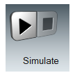 画面上部のリボンにある、シミュレーションの実行(再生)ボタンをクリックします。