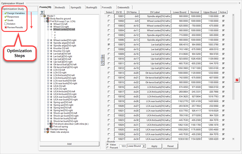 これらの手順は、MotionView 2025の最適化ウィザードに組み込まれています。このウィザードでは、上記の手順を実行するための直感的で手順を追ったアプローチが採用されています。Optimizationウィザードには、以下の方法でアクセスできます。