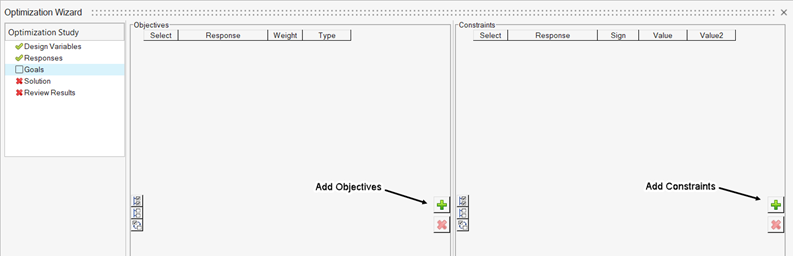 Optimization WizardのOptimization Setup/Goalsセクションで対応するセクションのAddボタンをクリックします。