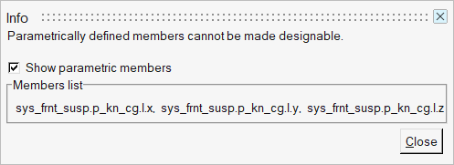 MotionViewでは、式を使用したパラメトリックな定義が可能で、そこでは既存の数量、既存の自由パラメータ(以降で説明します)、既存の式を使用して新しい数量を定義できます。従属数量(他の数量を使用してパラメータで定義する数量)は、DVとして定義できません。DVとして選択できるのは、“独立”数量のみです。