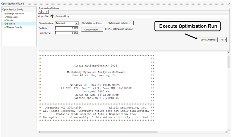 - Optimization WizardのSolutionセクションで、ファイルブラウザを使用してモデルの出力ファイルを指定します。