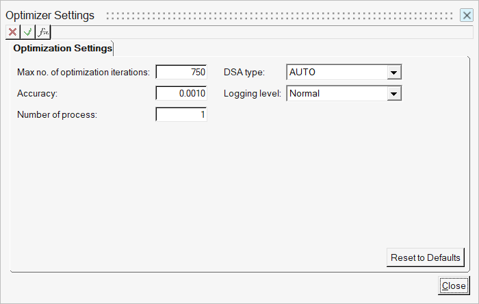 Optimizer Settingsダイアログが表示されます。
