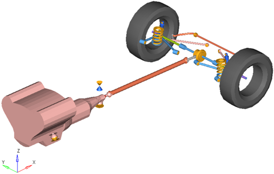 - Assembly Wizardを使用すると、サスペンションとサブシステムとの多彩な組み合わせを構築できます。グラフィカルユーザーインターフェースを使用して、システムを構築し、作成したモデルを理解することをお勧めします。