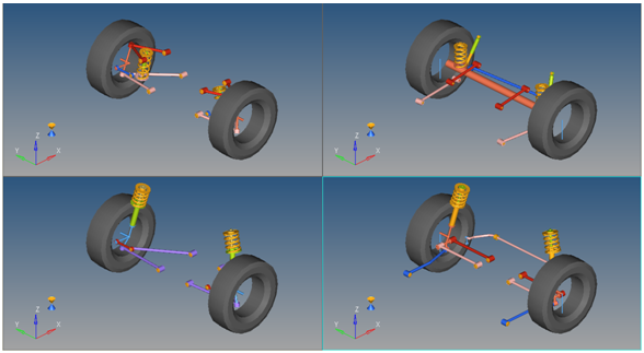 リアサスペンションモデルは、フロントサスペンションと同じプロセスを使用して構築されます。Assembly Wizardを使用すると11種類のリアサスペンションが利用できます。