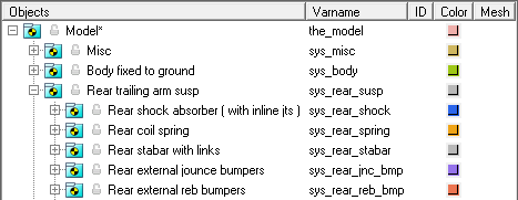 新しいサスペンションモデルを構築するときは、モデルに含まれるオプションのシステム(スタビライザーバーなど)をすべて使用してモデルを構築します。Projectブラウザを使用してオプションのシステムを直ちにオフにし、ベースサスペンションに対する解析を実行して適切な解が得られるようにします。オプションのシステムでデータを利用できるようになったら、これらオプションのシステムをアクティブにしてデータを読み込みます。