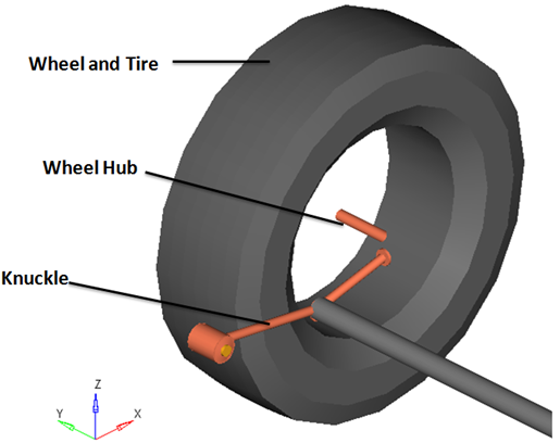 - ホイールハブボディは、ブレーキローターなど、回転する他のボディの質量と慣性を表しますが、サスペンションを駆動する場合、このボディではハーフシャフトの質量と慣性は使われません。ホイールハブおよびブレーキローターには、関連するグラフィックスはありません。