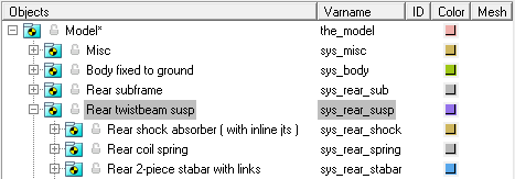 | トレーリングアーム、トラックバー | デフォルト:サブフレーム サブフレームがない場合:車体 車体がない場合:Ground |