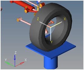 | Ground Reference at Contact Patch | Tcp_grnd | ボディ“ground”上でJack Geomuポイント(タイヤパッチ)の位置に置いたマーカーペア。マーカーのZ軸は全体座標系Zに沿い、マーカーのXZ面は全体座標系X軸に沿います。 | このマーカーはMotionSolve解析では使用されません。 |