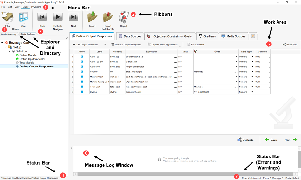 DOE、最適化および確率統計スタディなど、以降の手順は、どのアプリケーションについても共通しています。詳細については、HyperStudyオンラインヘルプをご参照ください。