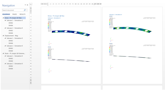 このオプションは、選択された各結果について新規のチャプターを生成します。各チャプターは、選択された荷重ケース毎のサブチャプターを有し、選択されたパーツ毎の専用のサブチャプターを有します。