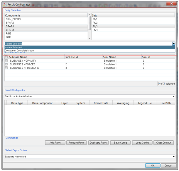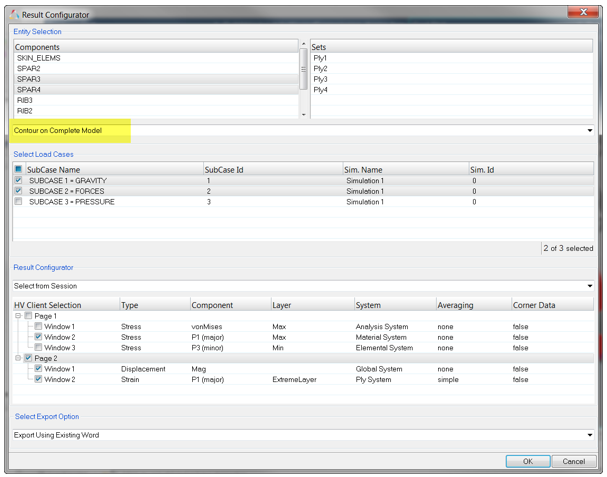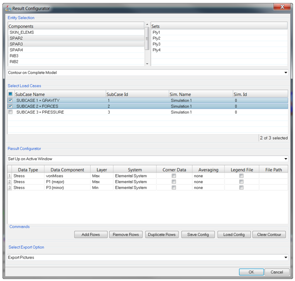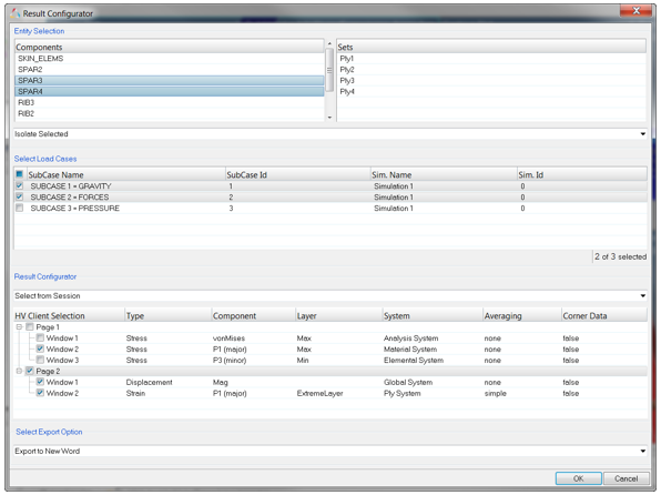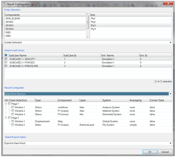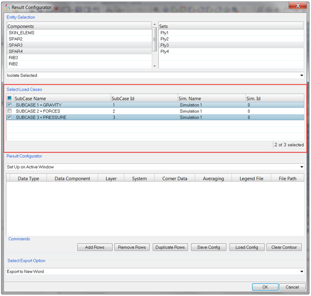 1つまたは複数の荷重ケースを選択します(各荷重ケースは、そのサブケースIDとシミュレーションIDの組み合わせから固有のエンティティとして構造化されます)。図 2.
