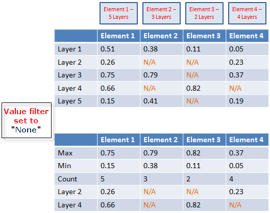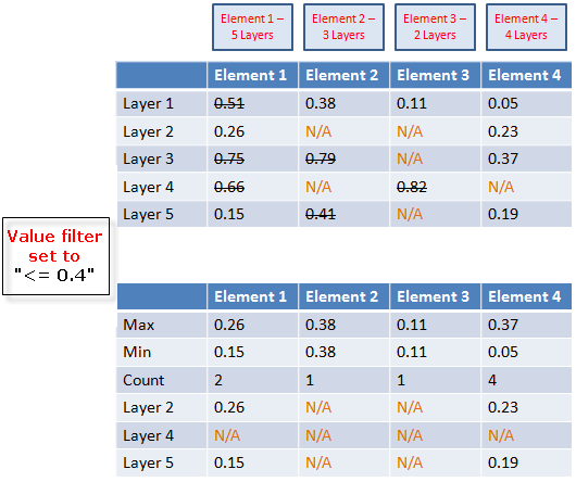 0.4以下(Value filter設定)である層のみが合計数およびその他の計算(最大値、最小値など)に含まれます。