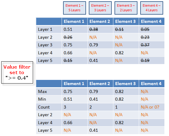 0.4以上(Value filter設定)である層のみが合計数およびその他の計算(Max、Minなど)に含まれます。