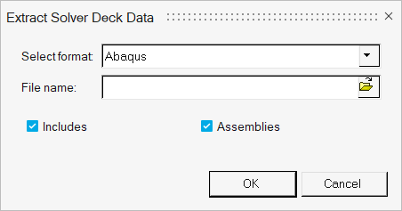 ダイアログを表示するには、ToolsメニューからExtract Solver Deck Data選択します。図 1. Extract Solver Deck Dataダイアログ