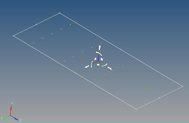 ストリームラインの作成に使用されるストリームラインレーキが、ライン、プレーンまたはエリア上のシード節点により定義されます。このライン、プレーンまたはエリアは、レーキタイプに固有のマニピュレータを使ってスケーリング、平行移動または回転させることができます。