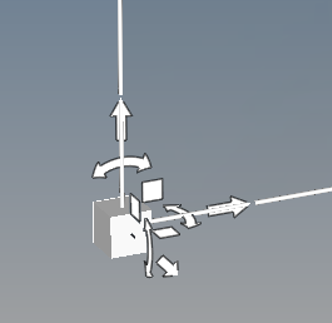 各矢印は、直線に沿って自由にドラッグできます。弧状の矢印を掴んで、イメージプレーンを回転させることができます。また、正方形のハンドル結合矢印は、空間内を自由にドラッグして平面上を平行移動させ、イメージプレーンの場所を修正することができます。コーナー(立方体)ハンドルは、イメージプレーンのサイズ変更に使用できます。