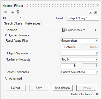 Advancedオプションを使用して、選択したシミュレーションステップ、コンポーネント、アセンブリごとにホットスポット検出を繰り返すことができます。