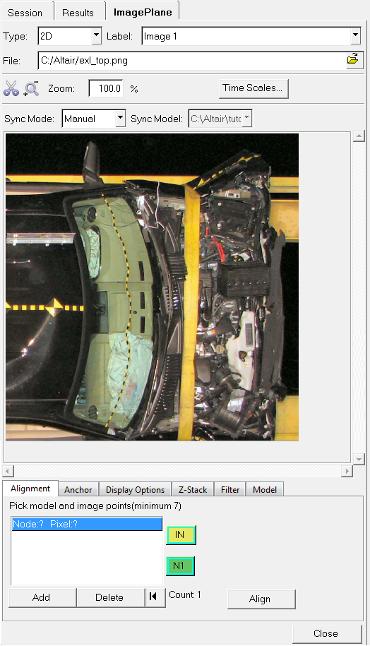 ヒント: イメージプレーンは、Resultsブラウザ内でコンテキストメニューを用いても作成できます。Image Planeタブが表示されます。図 2.