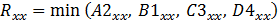 フォンミーゼスなどのインバリアントの最小平均については、すべてのテンソル[A2]、[B1]、[C3]、[D4]のフォンミーゼス値が計算され、それらは次のように平均化されます: