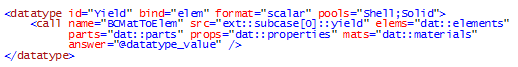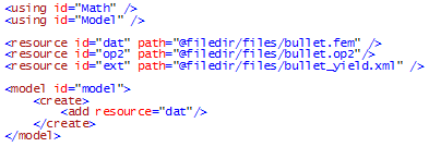 - model:コンテンツの矛盾を解決するために追加の処理が必要な際、それらの解決にモデルタグが使用されます。上の例は、DATリソースからのモデルコンテンツを受諾するようResult Mathに指示しています。これが指定されていない場合、重複IDのエラーがあり、このXMLファイルが“datリソース”および“op2”リソースの両方として読まれる際、重複した節点、要素およびパート情報を送ります。Result Mathは、入力デックリソースを読む際に、モデルコンテンツの抽出をサポートします。これらには、プロパティと材料、それらに付加されている値が含まれます。