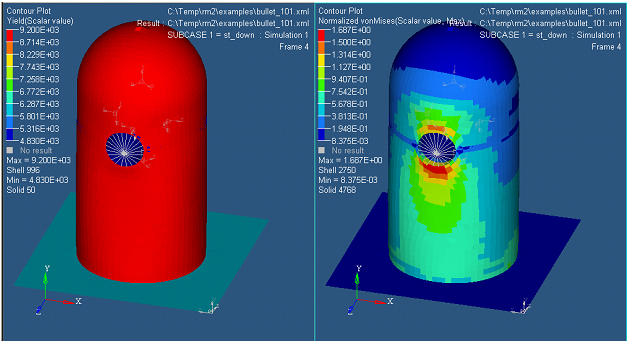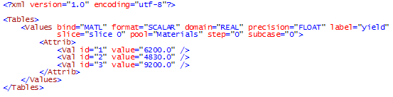 この例では、外部XMLリソースファイルが、モデル、および降伏値を含む結果に追加されます。このテーブルは、“Yield”と“Normalized vonMises”の2つのデータタイプを生成するために使用されます。