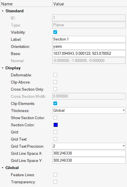 - 断面のタイプ(Planar)制約事項: この値は編集できません。
