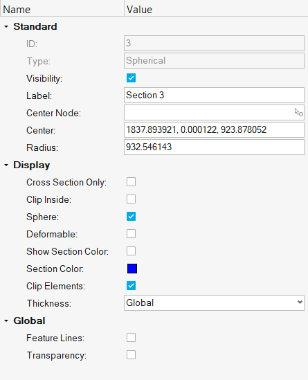 注: Spherical断面は、Section CutパネルのSection Cutsリストには表示されません。