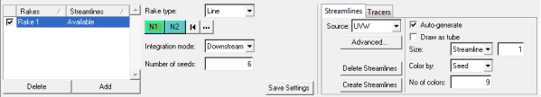 注: StreamlinesタブとTracersタブは、Rakesリスト内にアイテムが存在する場合にのみ表示されます。