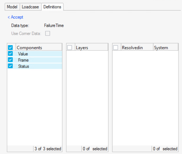 FailureTime結果タイプでコンター表示するために、次の3つの結果コンポーネントを使用できます: