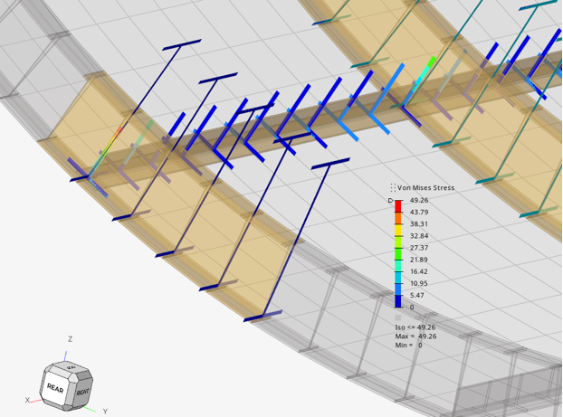 - 断面のテッセレーションは出力を指定した場合に作成され、応力コンターが表示されます。