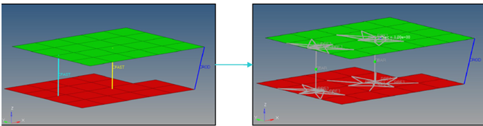 CFAST コンバーターツールを使用して、CFAST要素をCBAR/RBE3(スパイダー)に変換します。熱弾性解析の場合、CFASTには熱膨張係数はありません。CBARは熱弾性に適合しています。
