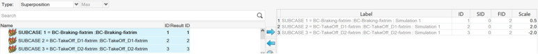 荷重ケースは、選択してツールの右側に移動することで、以下に基づいて組み合わせることができます。図 1. Linear Superposition