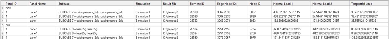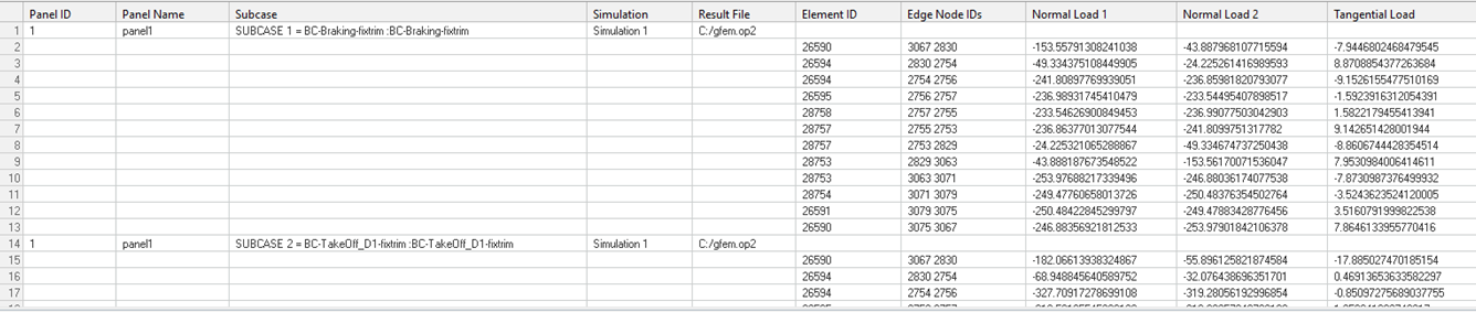 サマリーテーブルには、パネルエンティティのすべての法線荷重と接線荷重が表示されます。