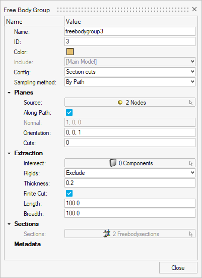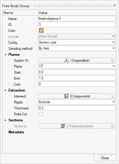 - Free Body Groupダイアログで、ConfigにSection cutsが選択されていることを確認します。