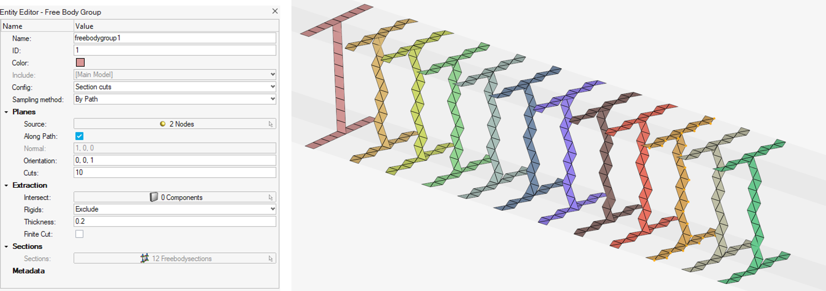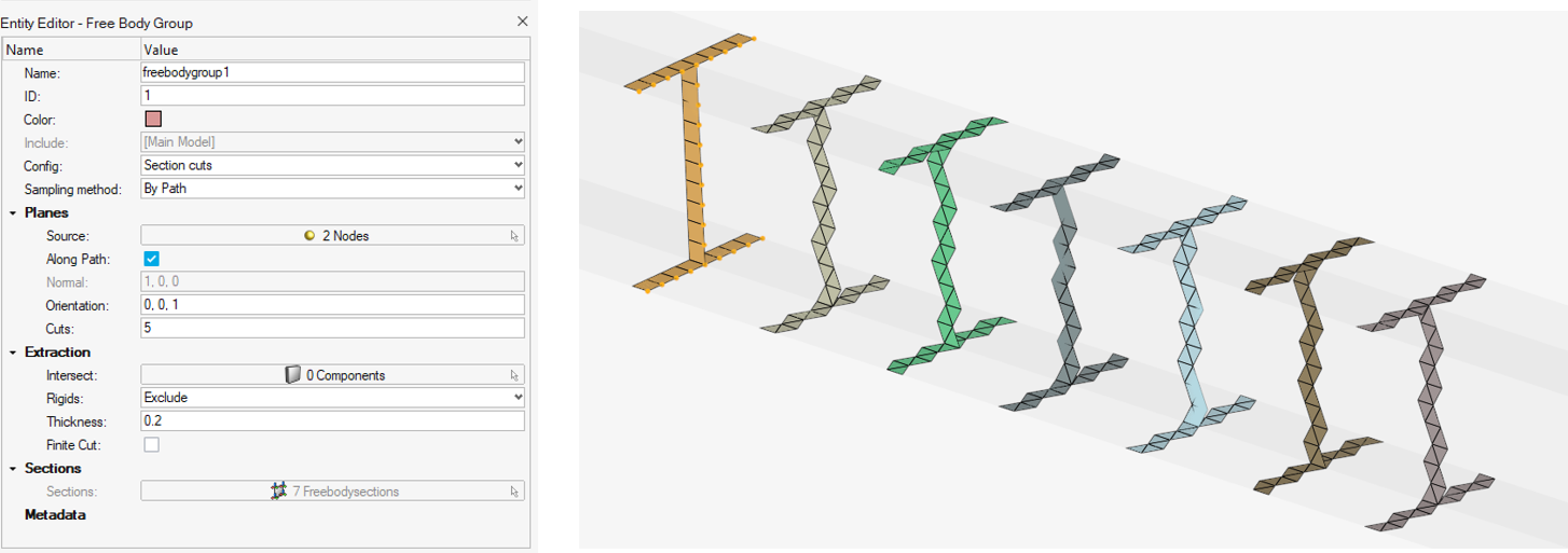 - Section cuts:サンプル平面のルールに基づき、複数のフリーボディ断面(有限または無限平面)として再生成する生成エンティティ。