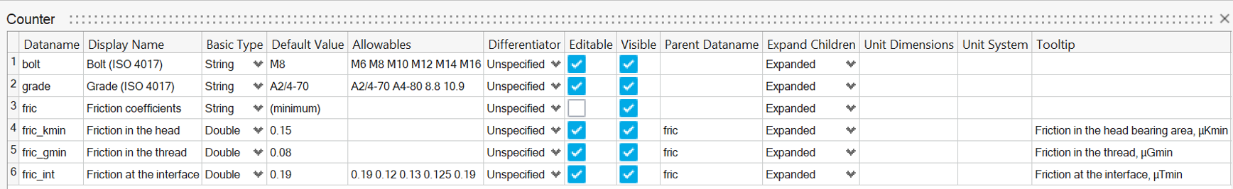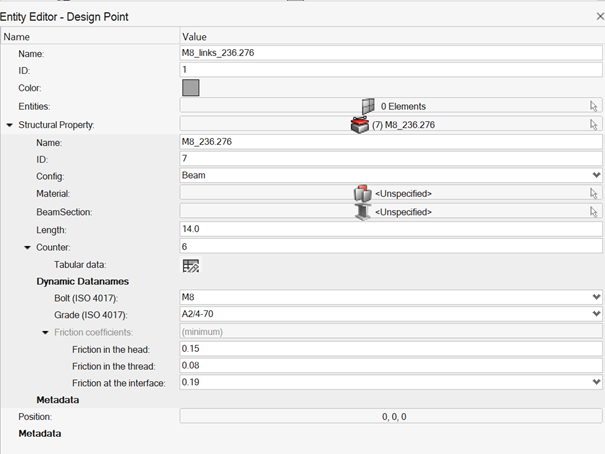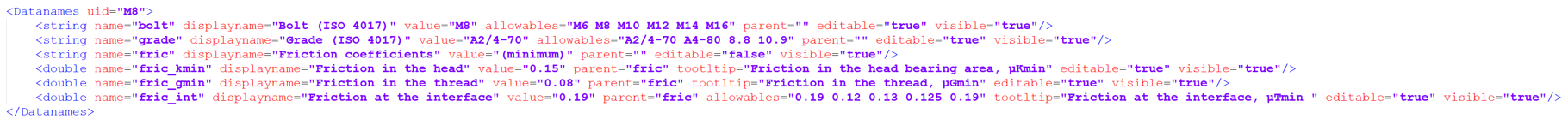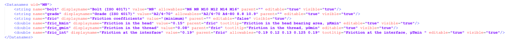 このようなブロックは、structural propertiesに追加する動的データ名の再利用可能なリストを定義することを目的としています。以下の例には、このxmlブロックと、HyperMesh GUIでの対応するもの、そして エンティティエディターでどのようにレンダリングされるかが含まれています。