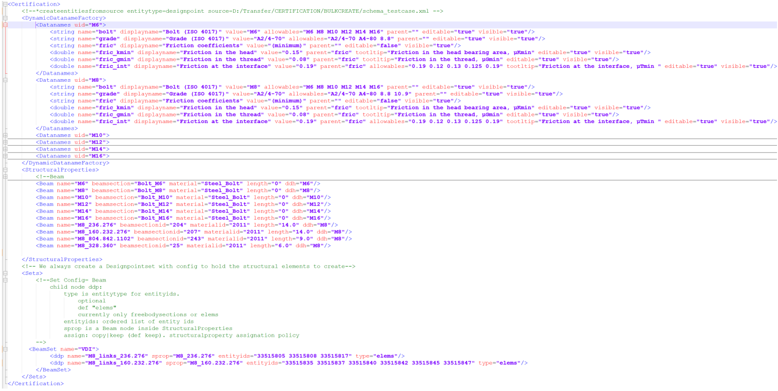 Certificationブラウザのコンテキストメニューから、designpointsとstructural propertiesを持つ複数のdesignpointsetsを一括してインポートします。