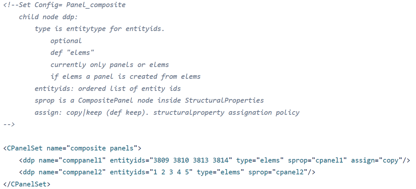 <ddp name=”” type=”” entityids=”” sprop=”” assign=””/>nameはdesignpointの一意な名前です。entityidsは、type=""で定義された型のエンティティの順序付きリストです(デフォルトはelems)。- cpanelとmpanelでは、選択された要素からpanelエンティティが作成されます。