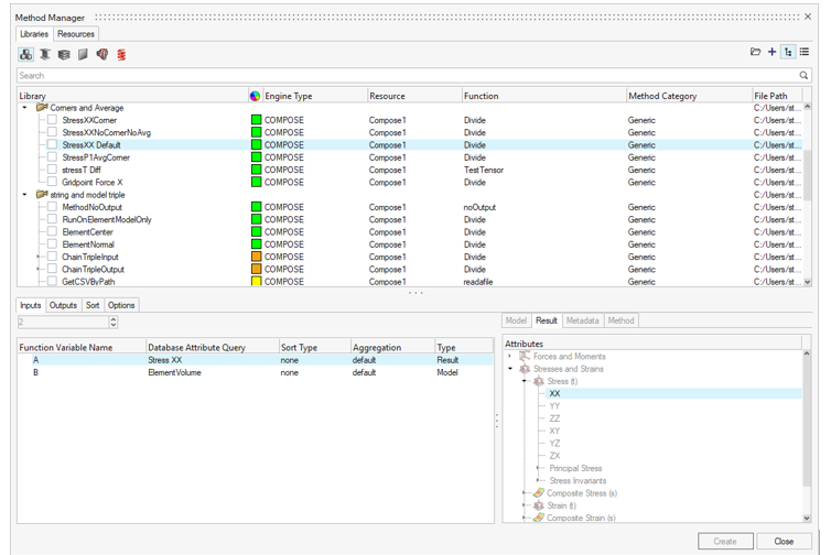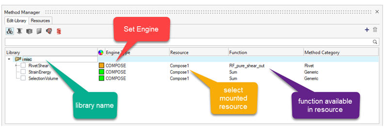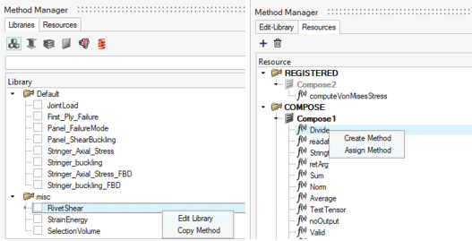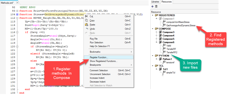 ファイル内で定義された関数(OML、Python、Tcl)が、メソッドの作成に使用できるリソースと見なされます。これらはResourcesタブ(図 2)で管理できます。